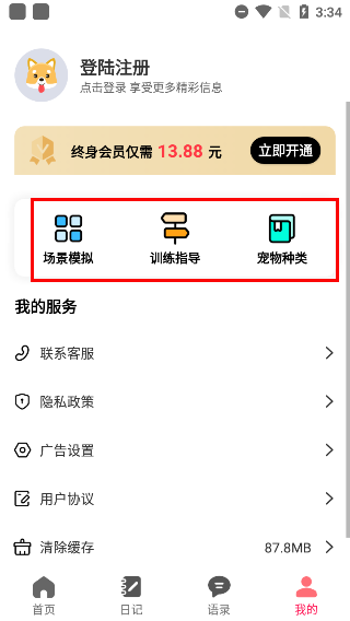 4、为了帮助“铲屎官”朋友更好的和自己的宠物相处,还提供了场景模拟、训练指导、宠物分类等功能