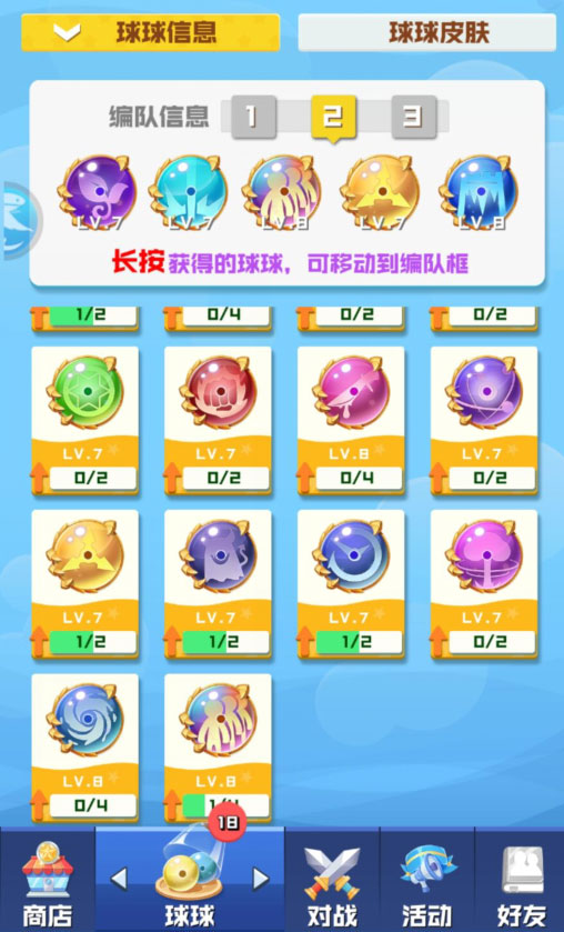 3、收集和升级各种球球,同时运用各种不同属性和技能击败敌人,成为竞技达人。