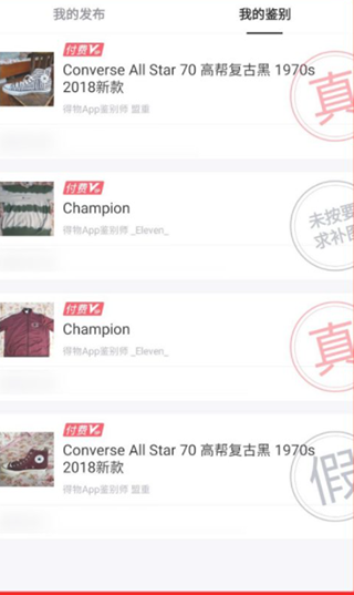 4、接着就会出现鉴别列表并显示你所鉴别过的商品。