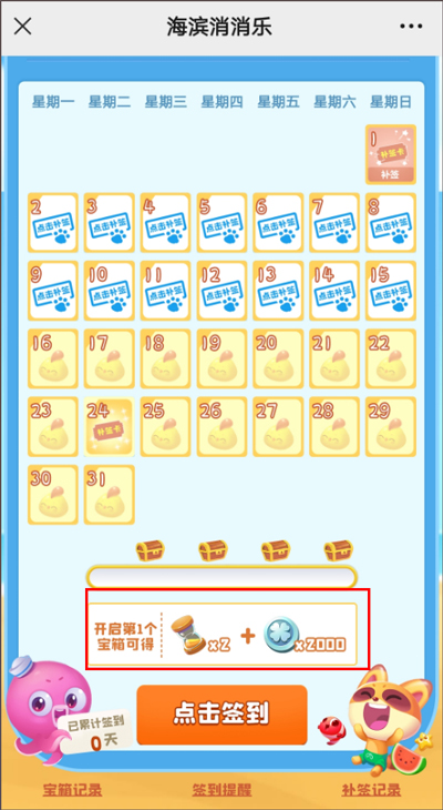 第二种:通过签到获取。关注海滨消消乐微信公众号,然后在这里坚持签到可以获得银币奖励。
