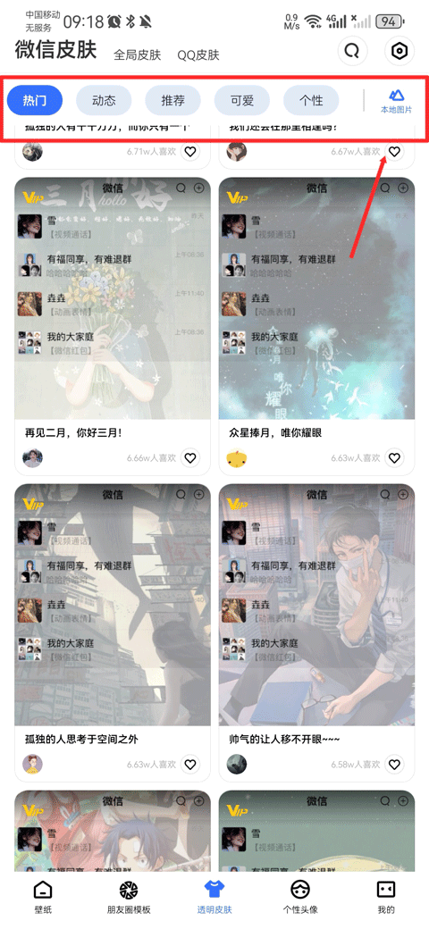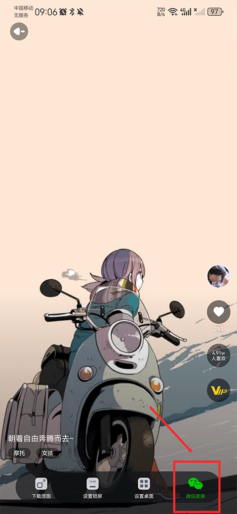 3、或者在壁纸界面最上方点击微信皮肤