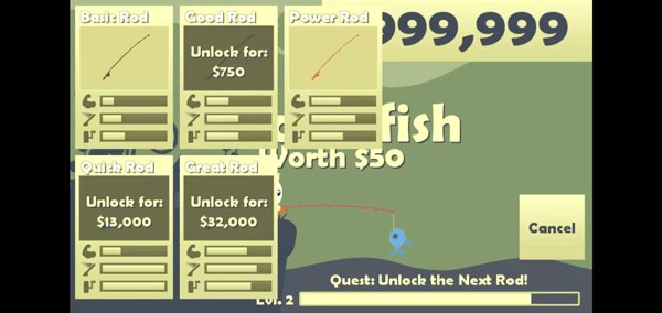 丰富的升级系统:通过出售钓到的鱼可获取金币,用于升级渔具和购买更好的鱼钩,使玩家在游戏中逐步提升实力。