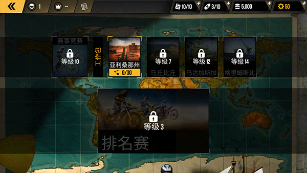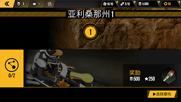 3、滚动地图发现新的事件和机会,点击①选择摩托即可开始比赛。
