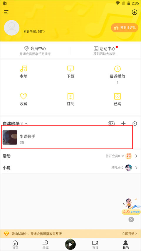 酷我音乐车机版如何创建歌单