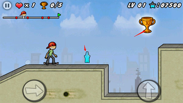 滑板少年是一款曾经非常火爆的经典游戏,在游戏内玩家需要操控着滑板少年在关卡中去冒险,游戏内的画质有着经典的画风让我们的体验感更佳,在游戏内我们需要控制通过的速度跳跃等一系列各种各样的操作,游戏中有许多的陷阱和障碍物,所以需要高超的技术和玩家们灵活的手指去拖动滑板,这么棒的游戏快来体验一下吧。