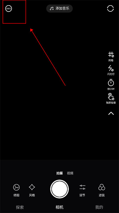 1、首先打开轻颜相机最新版2024年,点击左上角的设置。
