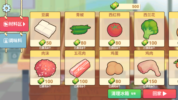 2、前期的时候我们需要制作很多的美味,然后根据客户的需求去进行制作美食;