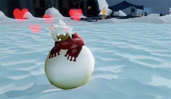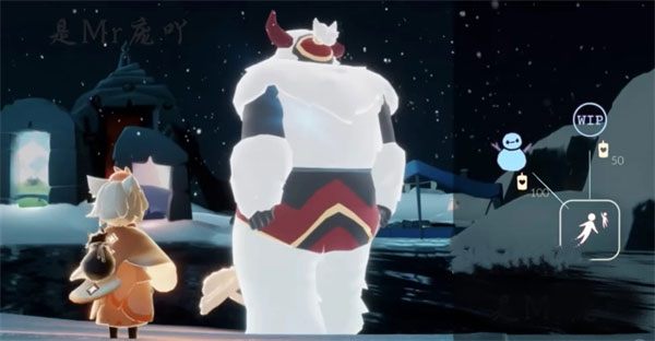 另外在办公室天台场景也会变成冬天的样式,那里也会有往年的物品返场。最后在霞谷的雪隐峰新增了一个滑雪玩法,需要两个人一起。在圆梦村随着雪地上的大脚印走就能看到雪怪先祖,靠近会为玩家施加一个雪人魔法。