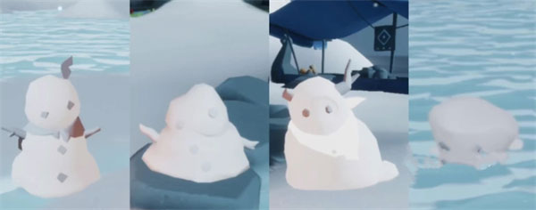 这次会新上线的是一个看起来很暖和的白色斗篷和一个天球套装。另外在水中的一个冰块上会有出现一个雪人先祖,在它那里能够换到雪人背饰和一个护目镜,这个背饰在放下来的时候会有四种形态。