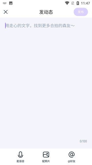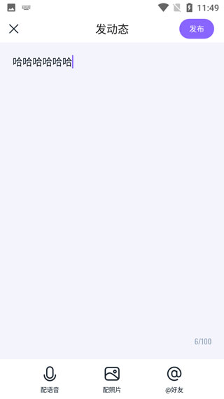 2、填写你要发的文字,你可以自由的进行配音、配图片、以及@好友;