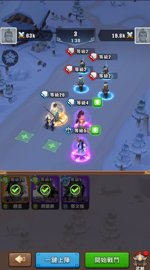 等游戏进程深入,慢慢收集姜维、刘备、赵云、诸葛亮、张飞这些强力武将,他们可是后期战力的大杀器。