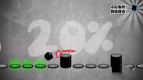 当然《永不言弃》高分只会跳跃还不够,因为闯关的过程中我们还将遇到各种陷阱由于小墨点会一个劲地前进,所以对于面前袭来的陷阱,我们需要机智地进行躲避,对于玩家的反应能力相当考验,容错率极低,只要在对应点位没有正好按下就会以失败告终。