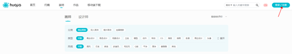 1、进入画加的app,选择画师,点击右上角的注册进行注册。