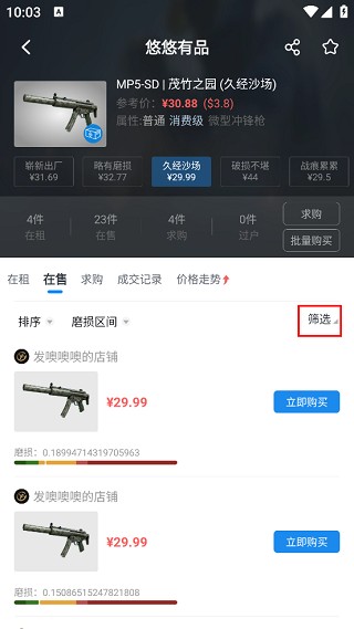 4、也可以点击右侧的“筛选”按钮,通过条件筛选快速的找到自己需要的饰品。