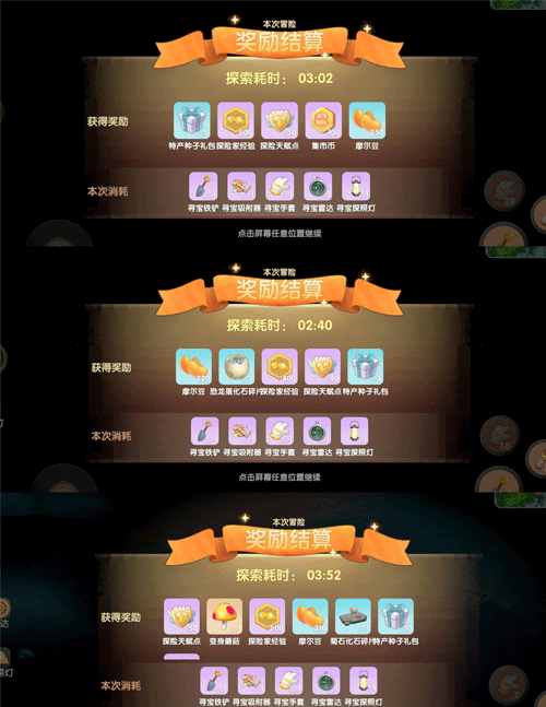不仅可以获取探险经验!还可以获得集市币、恐龙化石以及摩尔豆奖励~