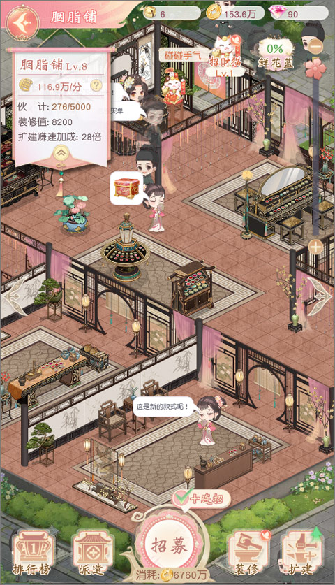 装修可改变店铺内装饰和家具外观效果,品质越高的装饰带来的装修值越高,可以带来更多的经营加成,就能更好的招揽顾客,装饰购买获得即可获得永久装修值加成,掌柜可以选择自己喜爱的外观和装饰,打造自己的店铺空间。