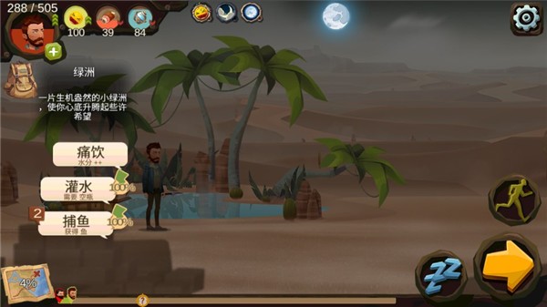 3、晚上睡觉和制作东西,心情保持在90以上,这样战斗之后能够快速恢复血量。