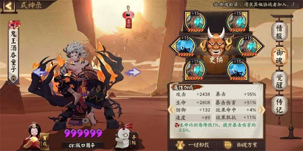 作为清空行动条的强控主要针对鬼王酒吞童子,铃鹿御前初始比鬼王酒吞童子多1点速度,同等御魂下铃鹿御前必定先出手,让鬼王酒吞童子回到行动条起点,让食梦貘等被鬼王酒吞童子打退坏境的式神再度登场。