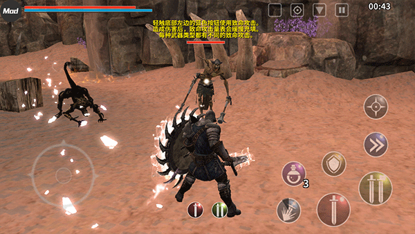 2、进入游戏后,玩家将扮演一名勇敢的骑士进行冒险,左边控制移动方向,右边控制攻击、释放技能等等;