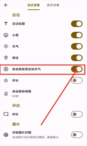 2、这里点击日记个性化。