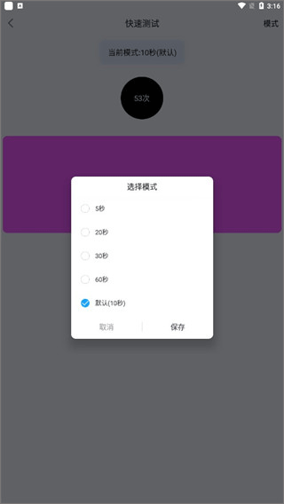 1、打开手速测试器后,在首页中选择“快速点击”和“滑动”模式进行测试