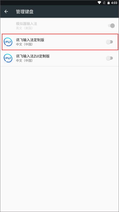 4、接下来就是选择切换到“讯飞输入法定制版”,进入到app系统界面。