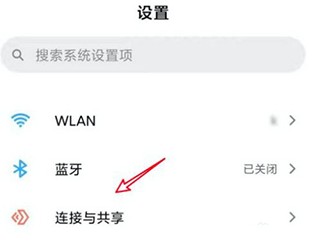 1、先是需要用户打开手机上面的设置点击对应的连接与共享。