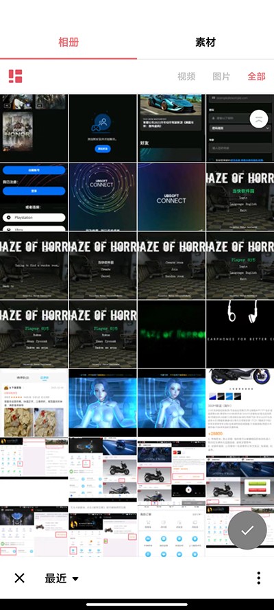 2、我们要先点击新建视频,如图在打开的界面中,选择第一个视频,点击右下角的对号,如图所示。