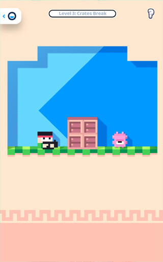 比如这款射击动作小游戏,黑色卡通是玩家,粉色是敌人,用枪击杀ta即可通关