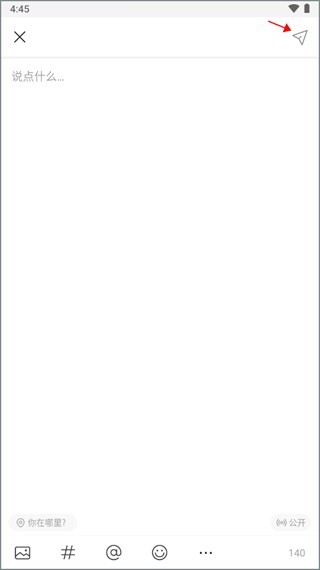 4、输入自己要发布的内容以及图片,写完之后就可以点击右上方的箭头图标发送出去,这时候就发布了一个微博了。