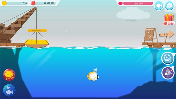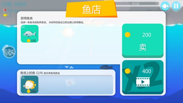 4、捕获的鱼可以到鱼店售卖,以此获得金币;