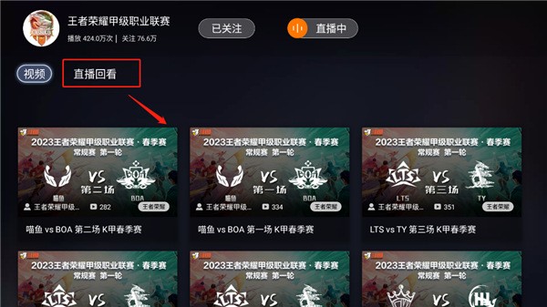 4、点击该主播的界面,然后就可以选择自己想要会看的视频。