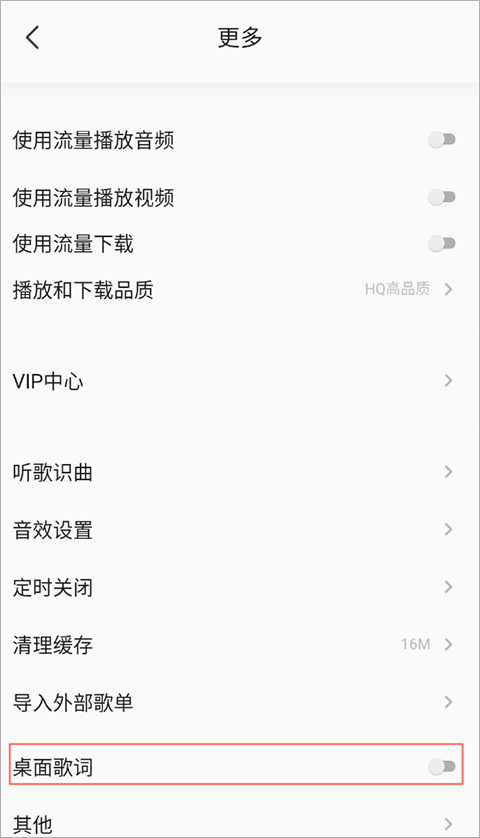 2、点击桌面歌词的开关就能够设置啦。