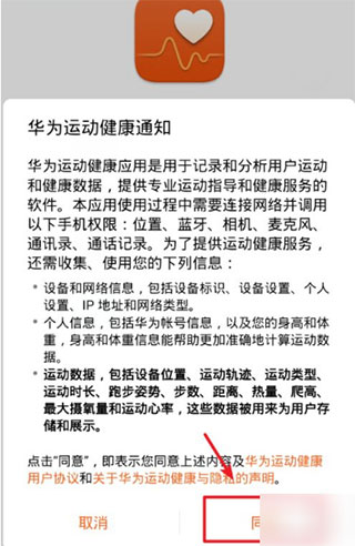 6、关闭后如果需要再次开启,也可以点击运动健康进入,点击同意协议的选项即可。