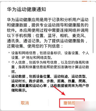 5、点击进入后,在弹出的窗口中,选择撤销授权的选项,即可关闭运动健康的手机计步功能;
