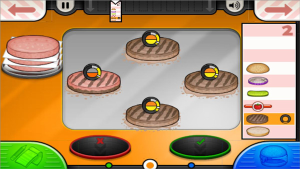 2、到烧烤台煎肉饼,肉的熟度是根据指针提示的,达到要求才行;