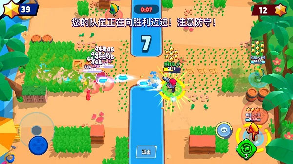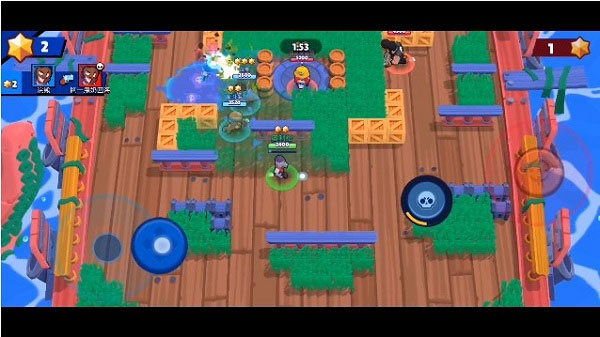 - 金库攻防(3对3):保护我方宝箱,同时摧毁对方宝箱。善用地图上的草丛和掩体,突入对方阵地,攻破宝箱。