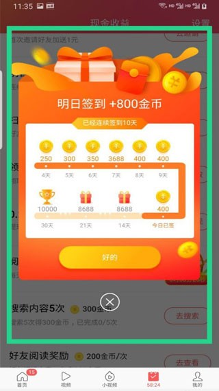 3、搜索内容五次,(包括带有金币的推荐内容)有固定金币。