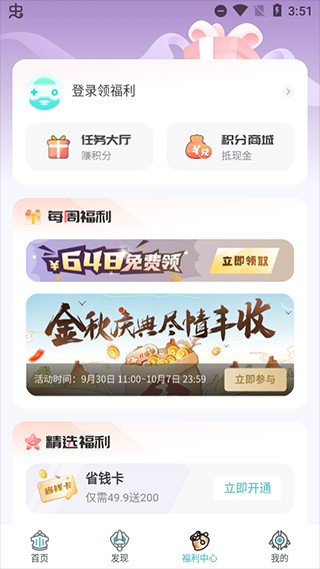 领取648礼包和省钱卡,享受高额返利和各种福利。