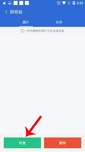 3、选着你要恢复的照片,并点击恢复。