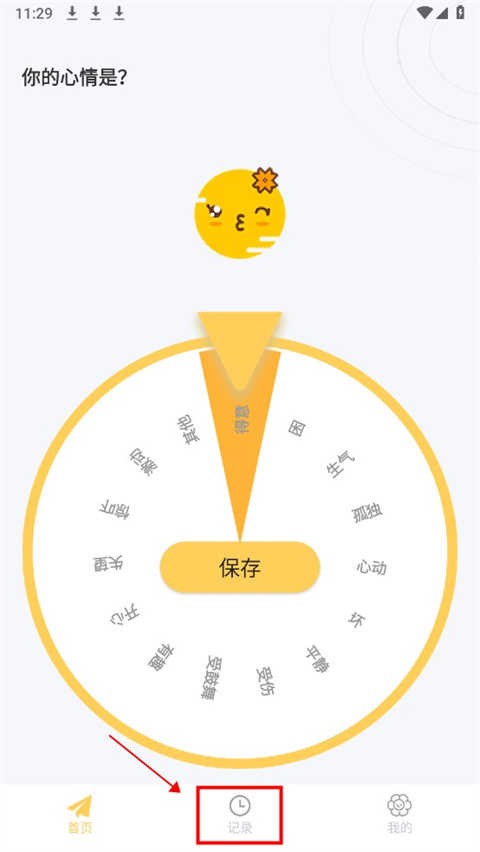 1、进入 app,点击记录页面;