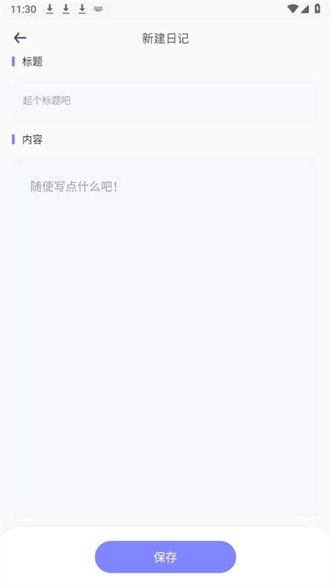 4、输入日记的标题和内容,点击保存即可。