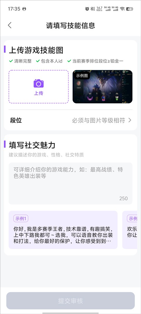 5、最后,每一个技能需要提交资质图和语音,点击提交,如果申请成功就可以接单了。