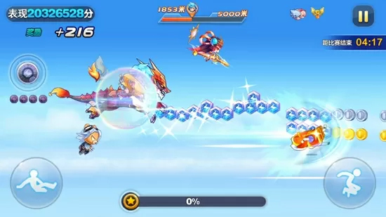 精灵中战争熊器的得分最稳定,是9000米左右爆分的关键。旋转舞娘发动技能后巨化旋转冲锋,并获得磁铁效果。这组搭配,技能在奖励关外障碍多的路段使用即可。旋转舞娘+觉醒赤兔+天照+小丑熊,宝物同上。这套搭配成本较低,万米内爆分,技能也是在奖励关外障碍多的路段使用。若将精灵替换成战争熊器,则能提前1000米左右爆分。注意各短爆搭配都要通过第一次巅峰挑战,且遇到穿越关直接出来。