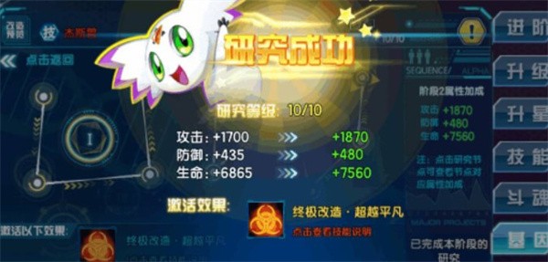 7、点击进阶,进阶数码兽的实力会大大增强。