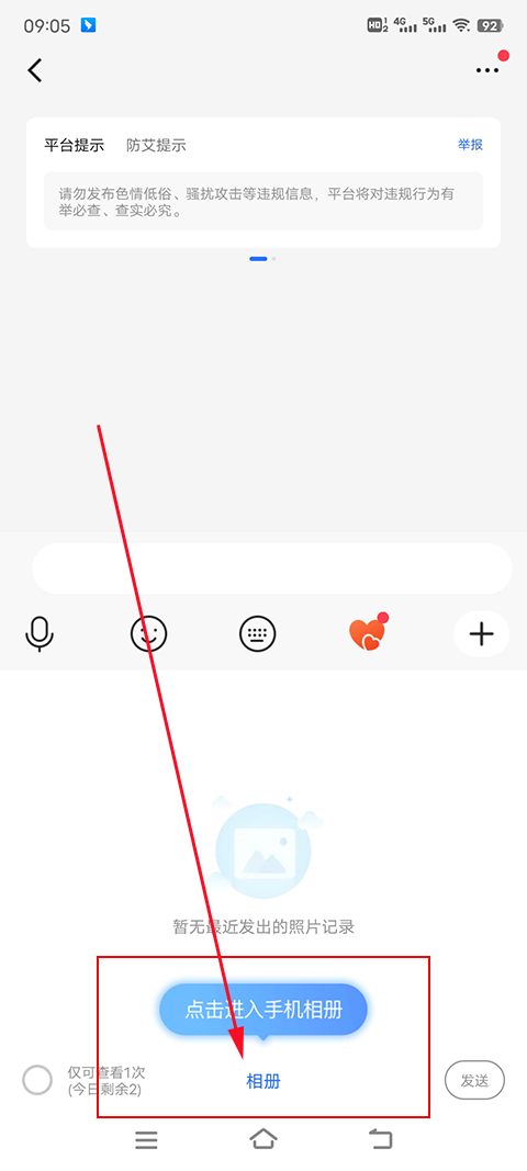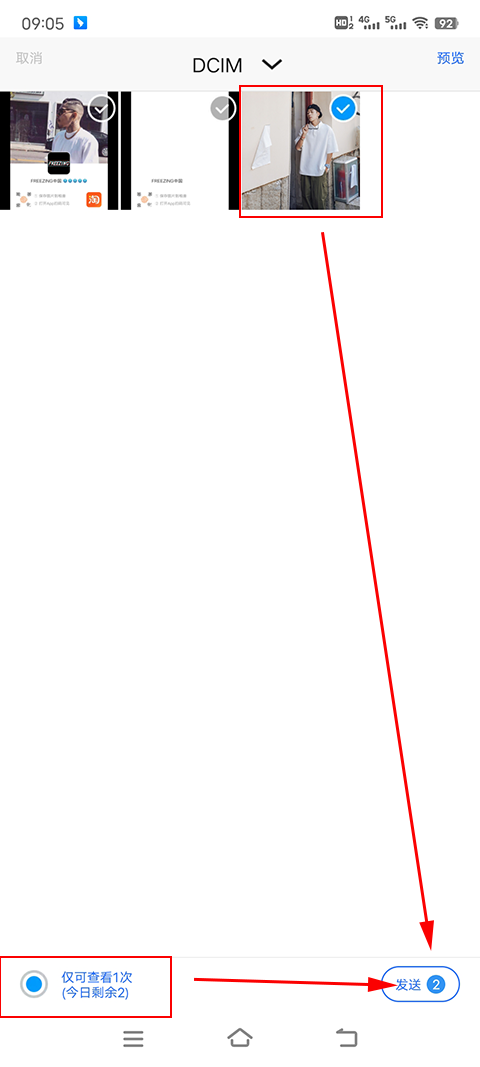 2、图片发送选项中,勾选上0秒钟显示的选择