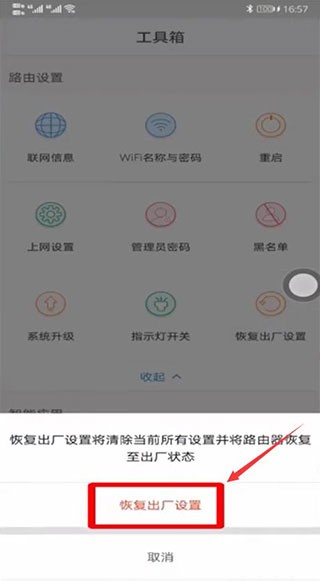 4、最后在弹出的窗口中点击“恢复出厂设置”。