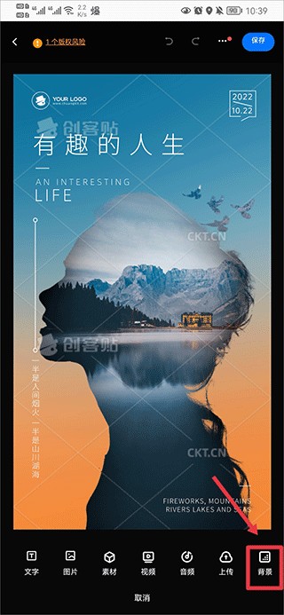 【背景更改】当你看背景不顺眼的时候怎么办呢?首先点击右下角添加,然后向右滑动后点击背景按钮,最后挑选合适的背景即可。
