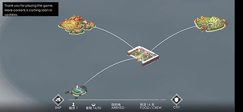 3、探索随机生成的世界地图,可与船只一起探索。寻找可以交易的城市,随机遭遇和掠夺。我们计划在发布后在世界地图上进一步扩展,角色升级角色单位获得经验值并升级。
