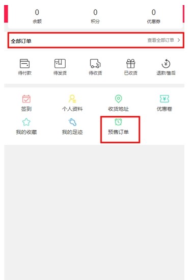 7、在“会员中心”可以查看自己的全部订单,以及预售订单